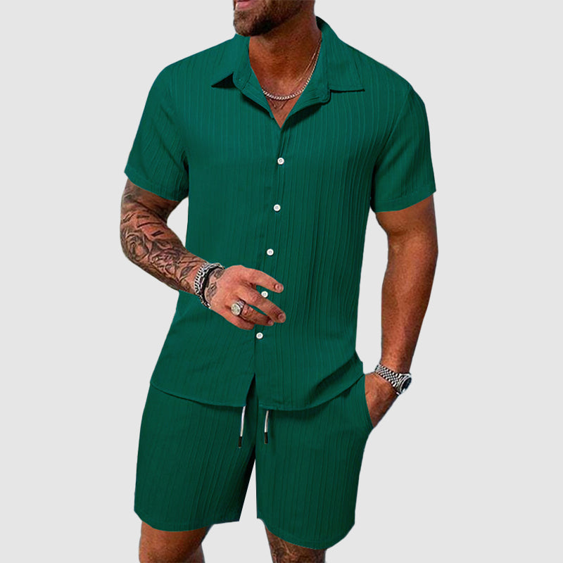 - Set includes: Button-up shirt and a matching set of shorts