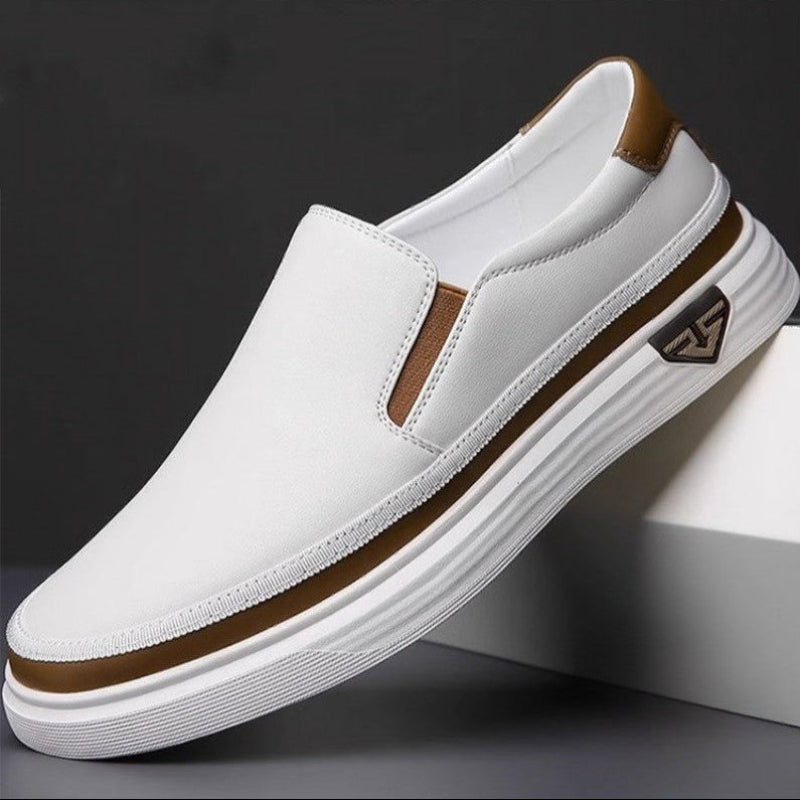 These men’s slip-on shoes are made from smooth leather with contrast trim and a clean low-top shape that gives a sharp everyday look. The laceless design makes them quick to step into when heading out. The defined sole and simple detailing keep the style focused and easy to wear across daily settings.